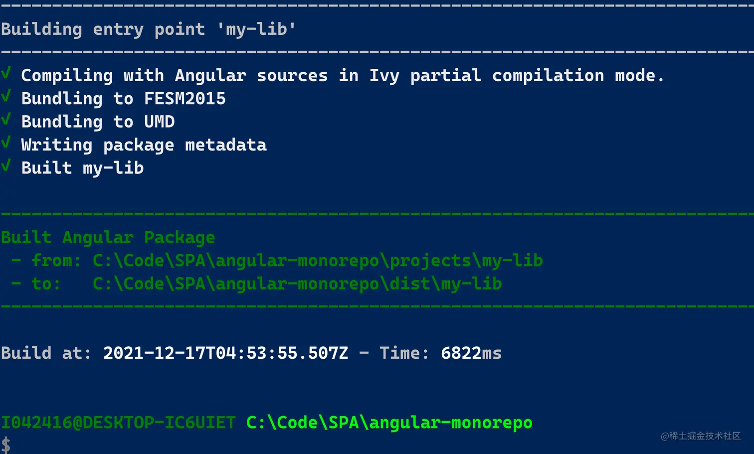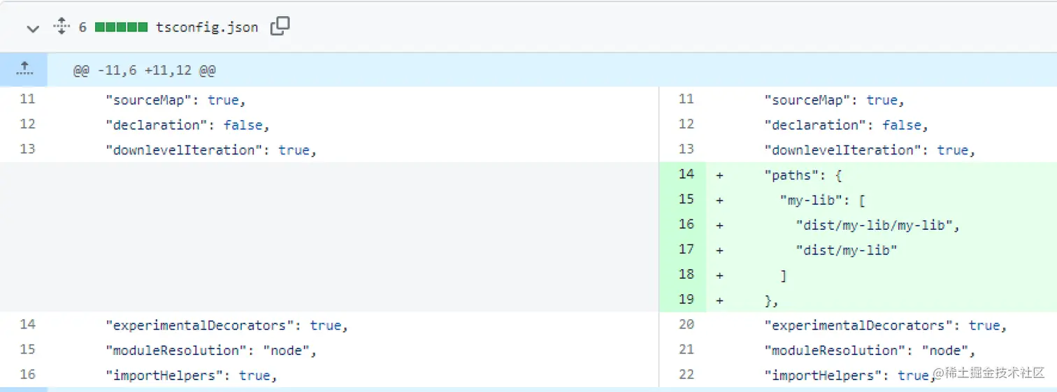 在工作区的 tsconfig.json 文件里,自动在 paths 里添加了 my-lib 到磁盘上物理文件的映射关系。这样,ng build 时,看到 my-lib 的 symbol,就会到 dist/my-lib 文件夹里查找类型定义: