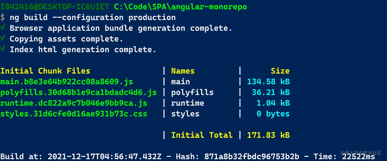 build 时使用的工具为:@angular-devkit/build-angular:browser