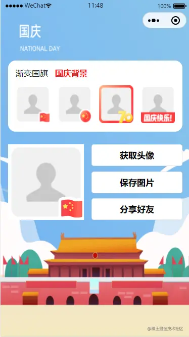 国庆来临,你们的节日头像换好了吗?最近“渐变国旗头像”火了,今天就为大家分享一下自己写的一个生成国庆头像的小程序。