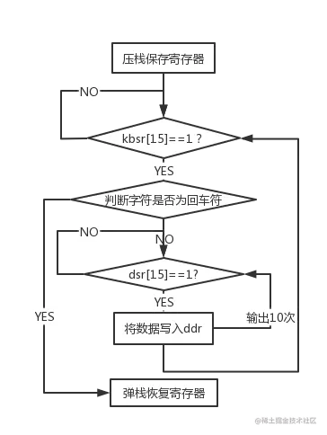 键盘中断服务程序将会简单地在屏幕上写上十次,用户随机输入的字符并以Enter(x0A)结束。