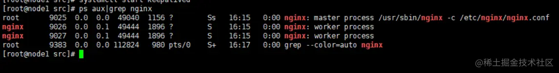 1 cd /usr/local/src //切换到src目录下,执行下面vim 创建脚本 vim nginx_check.sh # 复制如下内容到 nginx_check.sh 里面 A=`ps -C nginx --no-header |wc -l` if [ $A -eq 0 ];then # 当nginx 关闭,就立刻关闭 keepalived,用于转移虚拟ip到备用机上。 if [ `ps -C nginx --no-header |wc -l` -eq 0 ];then systemctl stop keepalived fi fi 2 更改 nginx_check.sh 执行权限 chmod +x nginx_check.sh重启keepalived