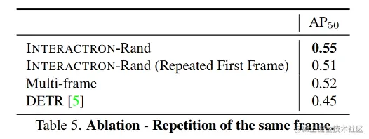 表5展示了使用随机交互模型仅查看第一帧的表现。