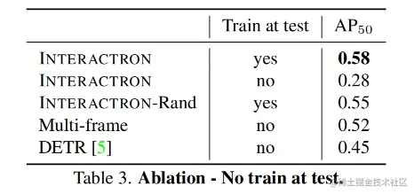 Learned Loss Training 学习损失策略是通过将检测 token 输出传递给 MLP 并采用所有特征的 l2 范数来获得一个标量,该标量是自适应学习的目标。l2 范数是一种技巧,将监督器 transformer 产生的向量序列组合成单个标量损失。在训练期间,根据目标注释计算 ground truth 损失,并由自适应检测器进行预测。用于调整检测器参数的梯度由监督器生成,可以通过自适应梯度反向传播以更新监督器参数,使其产生更加好的自适应梯度 (元训练)。在测试时没有目标注释,但是监督器现在已经被优化,可以使用序列中的其他帧和检测来产生良好的梯度。