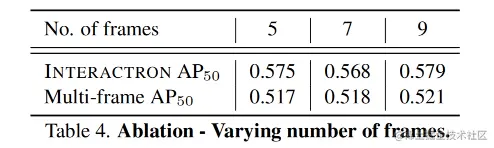 表4展示了不同帧数量对效果的影响。