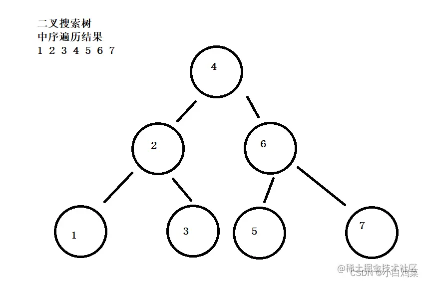 其性质的特点在于中序遍历的结果一定是升序的(如下图)