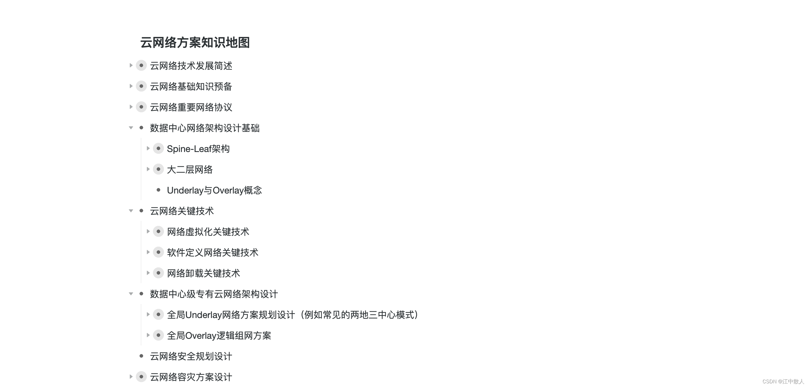Underlay是一张承载网,由各类物理设备构成,如TOR交换机、汇聚交换机、核心交换机、负载均衡设备与防火墙设备等。