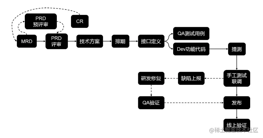 这是CODING团队某一时期的团队配合模式,这是大部分公司的研发模式。