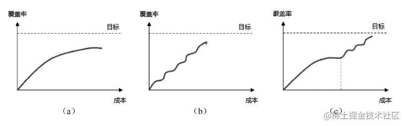 a:黑盒测试。前期覆盖率会迅速增长,但是“最后一公里”却很难达到。