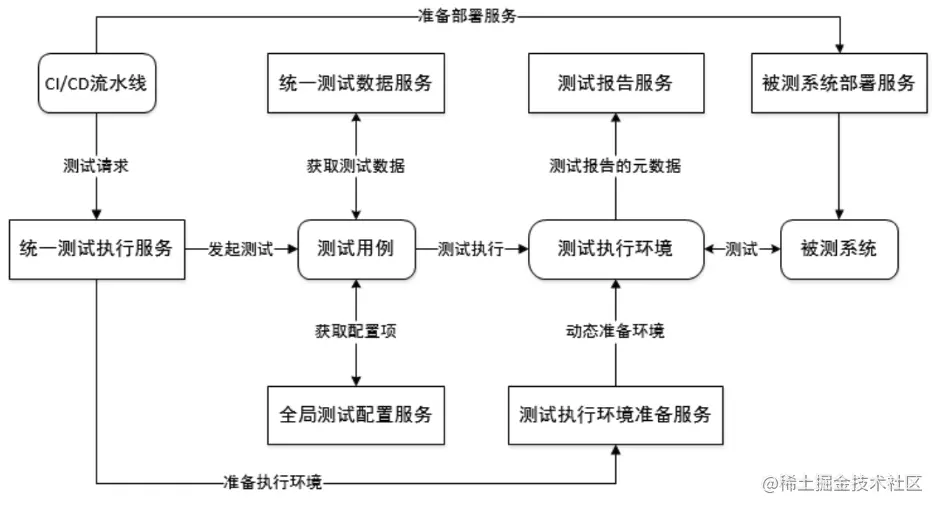 - 统一测试执行服务:承接来自CI/CD的测试需求,把测试数据和测试脚本解耦,用例和驱动解耦。