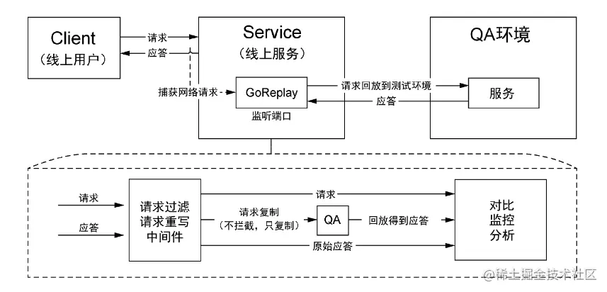 传统的流量回放其实也有硬伤,那就是对环境和数据依赖较高,只支持读请求,使用场景有限。有一种高级流量回放技术,就是阿里开源的JVM-Sandbox生态下的jvm-sandbox-repeater,它利用字节码动态增强技术,不仅能够获取每次请求中涉及的各个环节入口出口信息,还可以在回放时适时进行干预,达到mock的效果,以支持写请求的回放。