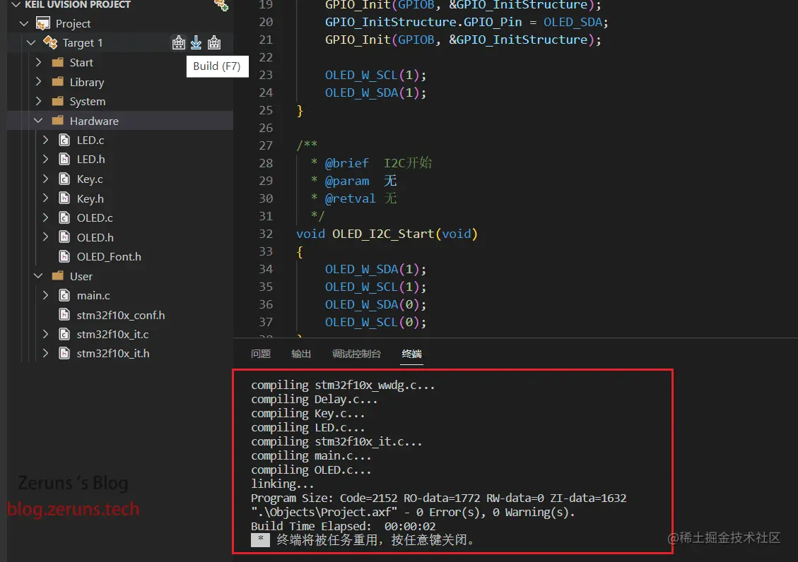 点击这个编译按钮,vscode就会调用keil来完成编译。