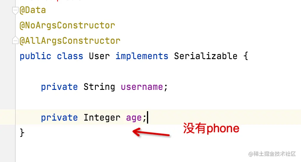 B系统中反序列化的对象,还是老的User版本如下: