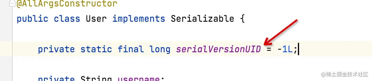 这时候,我们如果觉得这个序列化对象是可以兼容的,那么可以自定义一个serialVersionUID的静态成员变量,它就不会自动生成,而是直接用这个值,如下图: