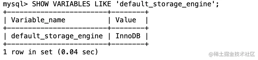 mysql>SHOW VARIABLES LIKE 'default_storage_engine';