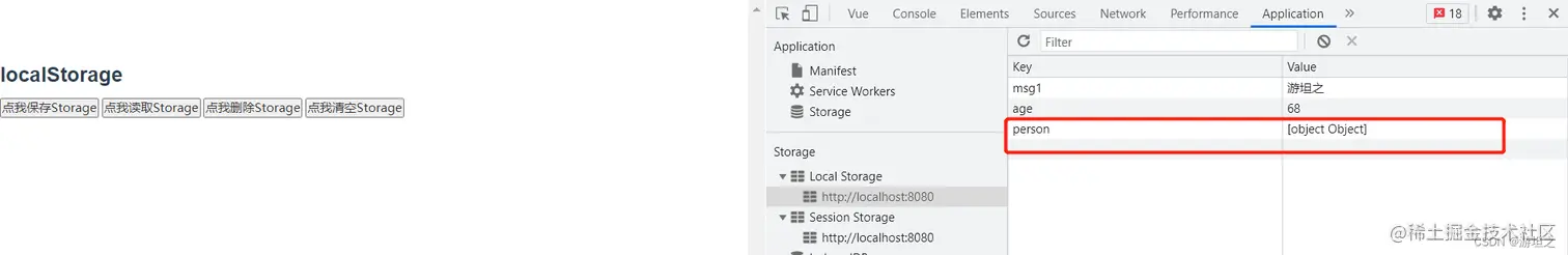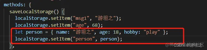 <button @click="savelocalStorage()">点我保存Storage</button>