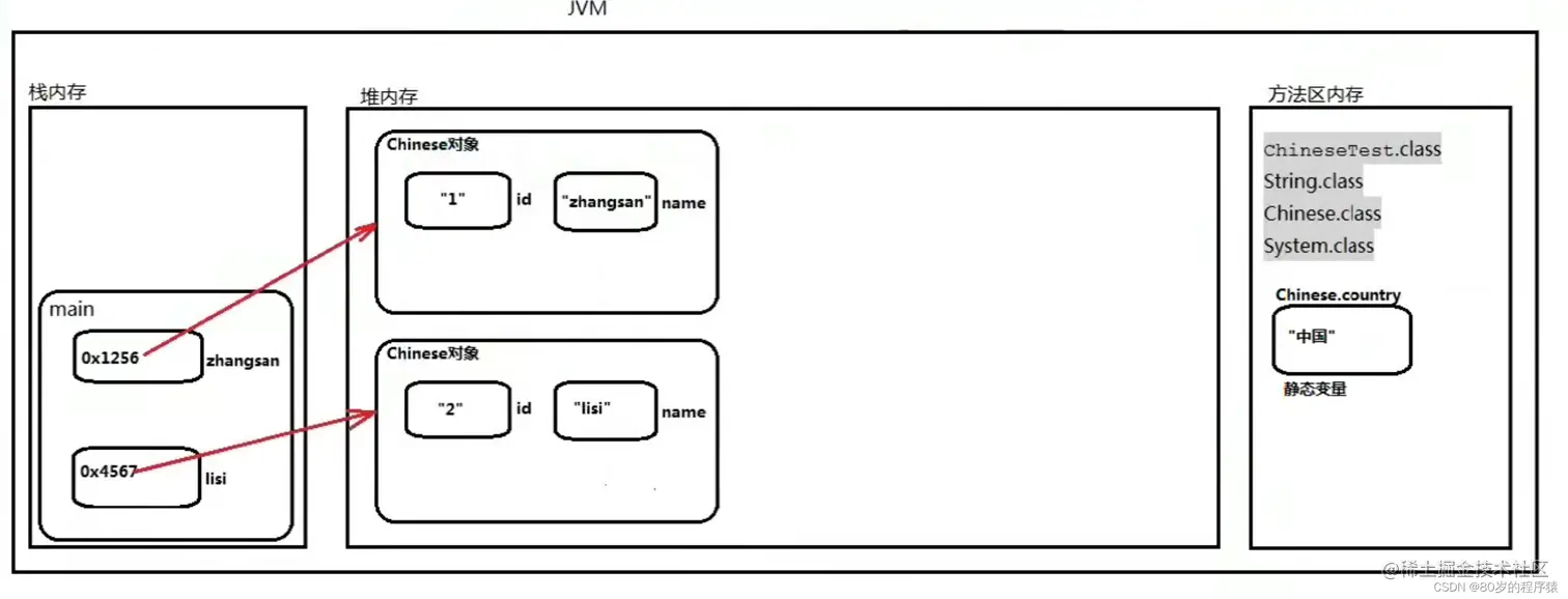 静态变量在类加载的时候初始化,内存在方法区中开辟。 访问的时候不需要创建对象,直接使用"类名.静态变量名"的方式访问;