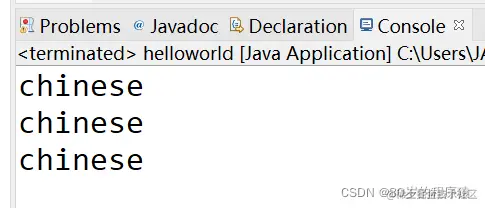 输出结果为三个Chinese;