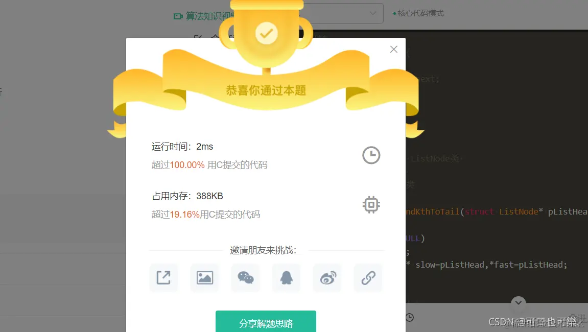 - 当快指针走完时,慢指针走到倒数第k个结点