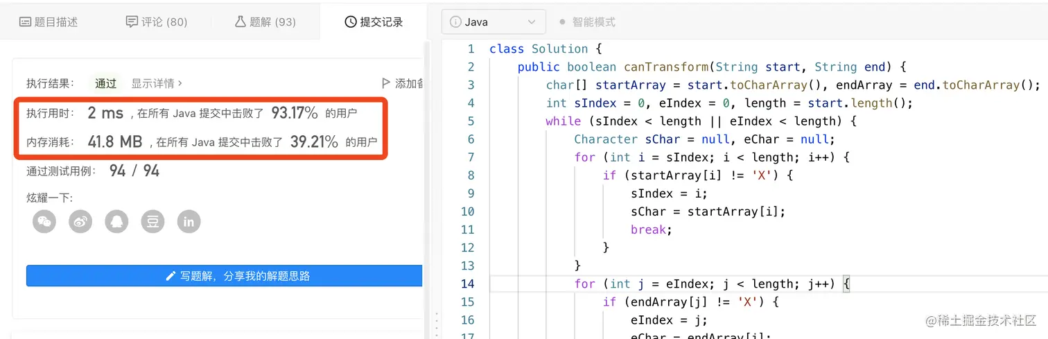【解释】我们可以通过以下几步将start转换成end: RXXLRXRXL -> XRXLRXRXL -> XRLXRXRXL -> XRLXXRRXL -> XRLXXRRLX