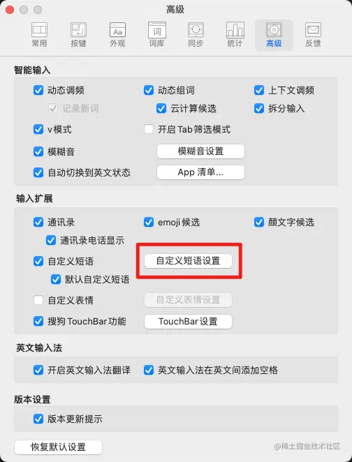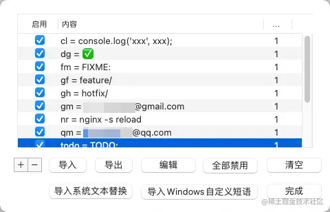 有一说一,这个功能个人感觉输入法必须要有,真是太省事了,很多经常要输入的内容,比如 git commit 的前缀、日期时间、常用命令行命令等都可以自己定义,要用的时候直接敲 2-3 个键就 ok