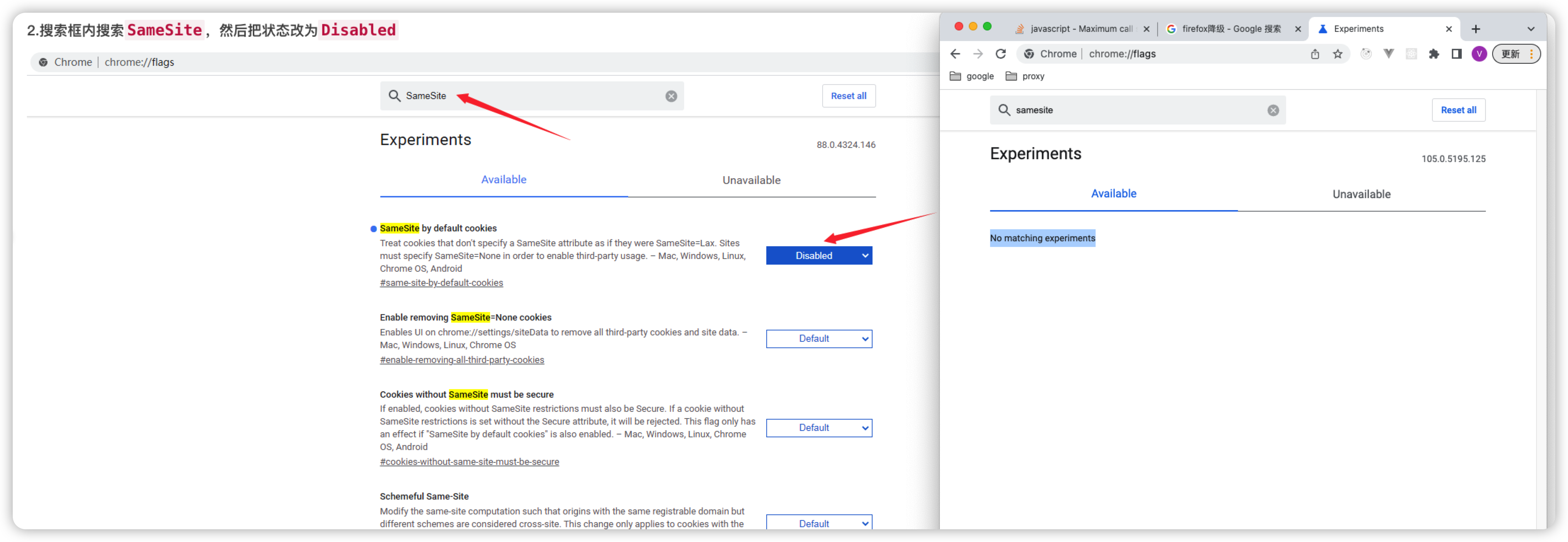 说是在浏览器地址栏访问chrome://flags,搜索samesite,然后disabled,我一尝试,我的chrome怎么没有这个选项呢?我的chrome是假的吗??