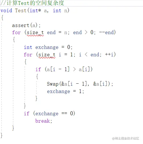 我们只是用了end,exchange,i 三个变量是常数,所以我们的空间复杂度和之前时间复杂度一样的计算,为:O(1)