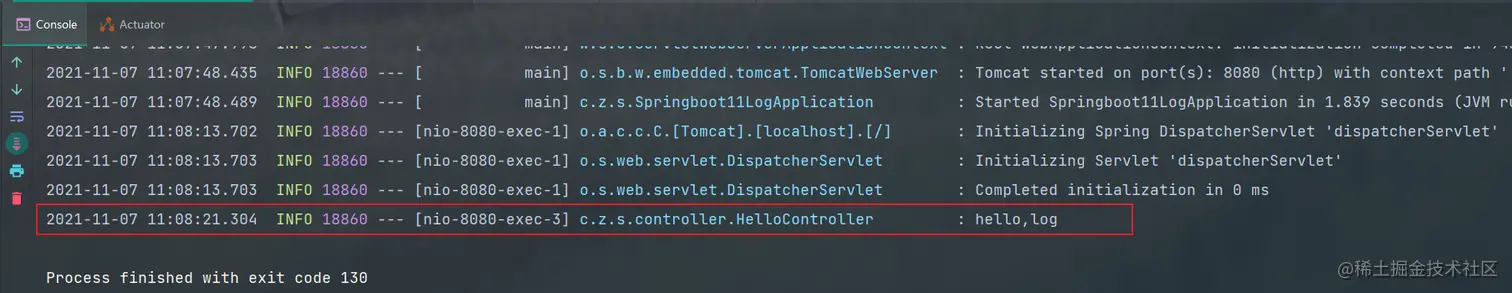 如果你引入了Web Starter,它会自动引入入Logging Starter,后者会引入Logback以及SLF4J,你可以使用SLF4J的API来编写log代码,实际底层会调用Logback。