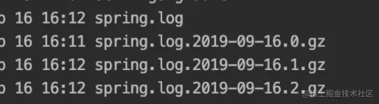 默认情况下,日志每天都会打包一下, 压缩成.gz文件保存下来。同时你可以使用logging.file.max-size可以指定最大的日志文件大小,比如100MB,如果到达这个大小之后,就会被压缩成.gz文件保存下来,一天中保存的多个压缩文件会用序号来区分,如上图。logging.file.max-history属性可以设置压缩文件最多可以保存多少天,超过期限的就删掉。