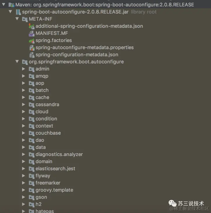 因为springboot把所有的自动配置的类都统一放到spring-boot-autoconfigure.jar下面了:
