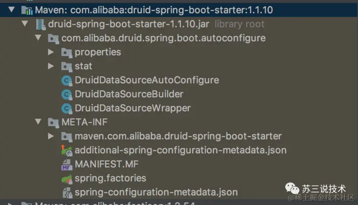 alibaba定义的druid-spring-boot-starter只有xxx-spring-boot-starter.jar文件,而没有xxx-spring-boot-autoconfigure.jar文件。