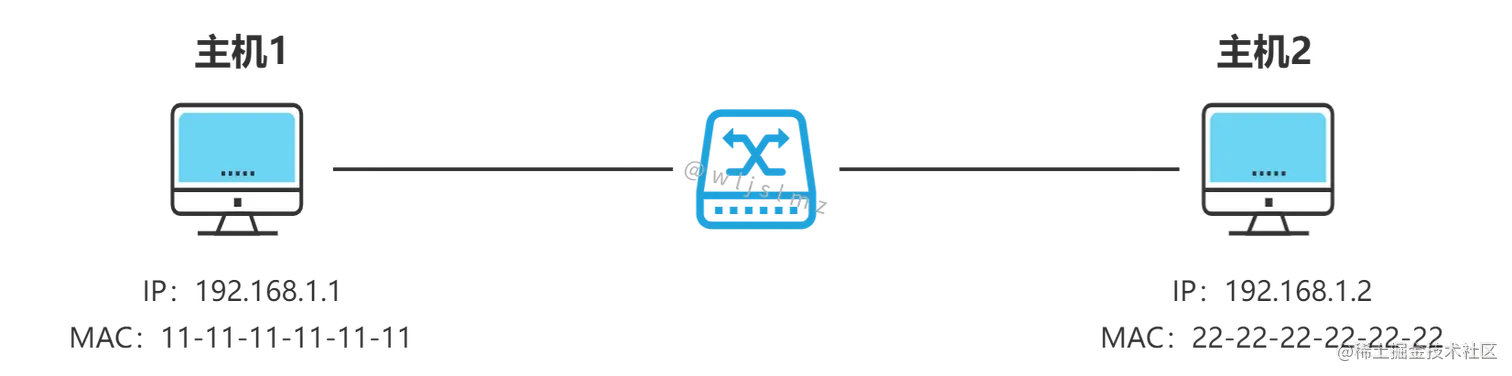 主机 1 使用 ARP 知道主机 2 的 MAC 地址。