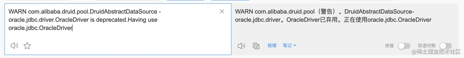 虽然这个不影响项目的运行,但是出于看着不舒服的情况,我还是决定看看这个告警出现的问题。仔细一看,这个问题还是比较简单的。我找百度翻译给翻译下吧。