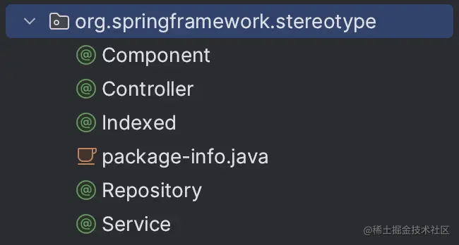 使用过 Spring 框架的小伙伴都知道,在日常的项目开发中,我们不止会用到@Component注解,经常使用的还包括@``Controller、@Service、@``Repository,这写类也会被 Spring 扫描组件时被筛选到,这是如何扫描到的呢?