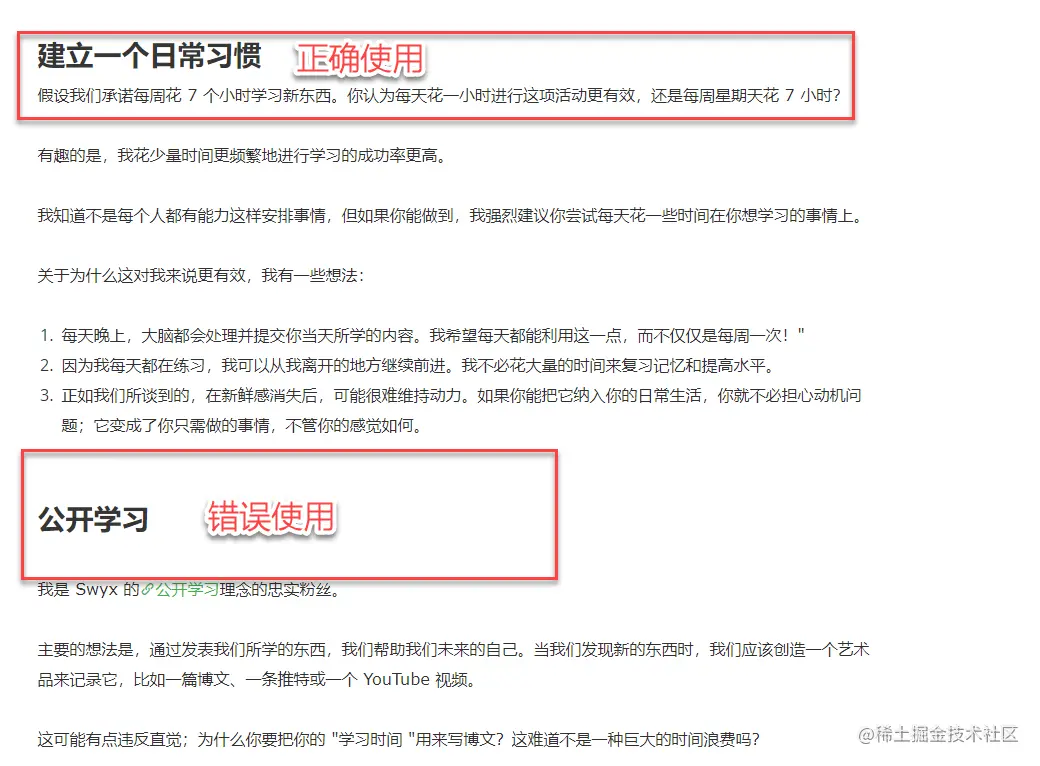 在我们的日常写作中,其实空白就可以表达出这种关系。因此不建议文章的标题和段落都加上一个空白,这样就会导致读者不清楚标题是属于上面的文本还是属于下面的文本。