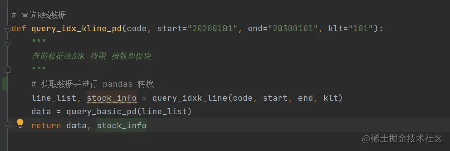 获取上证指数的代码如下图所示: