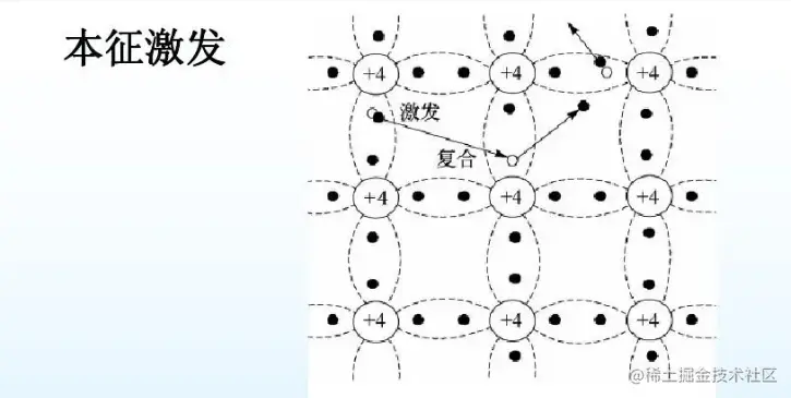 但是,不是在绝对零度的情况下,保不其会有哪个价电子能够逃逸共价键的束缚。在热运动的作用下一旦这个价电子逃逸出来的时候,就会立马变成自由电子,它变成自由电子自身就会留下一个空穴。这种叫做是 本征激发。