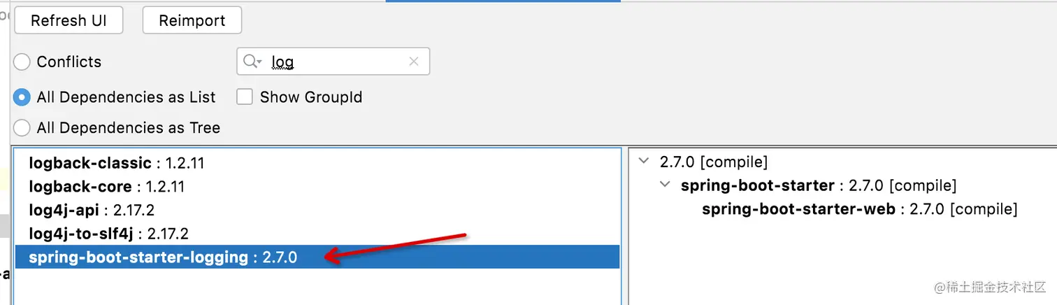 <artifactId>spring-boot-starter-logging</artifactId>