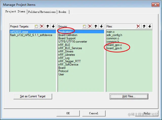 将 board_gpo.c 和 board_gpo.h 两个文件加入工程的Application文件夹下