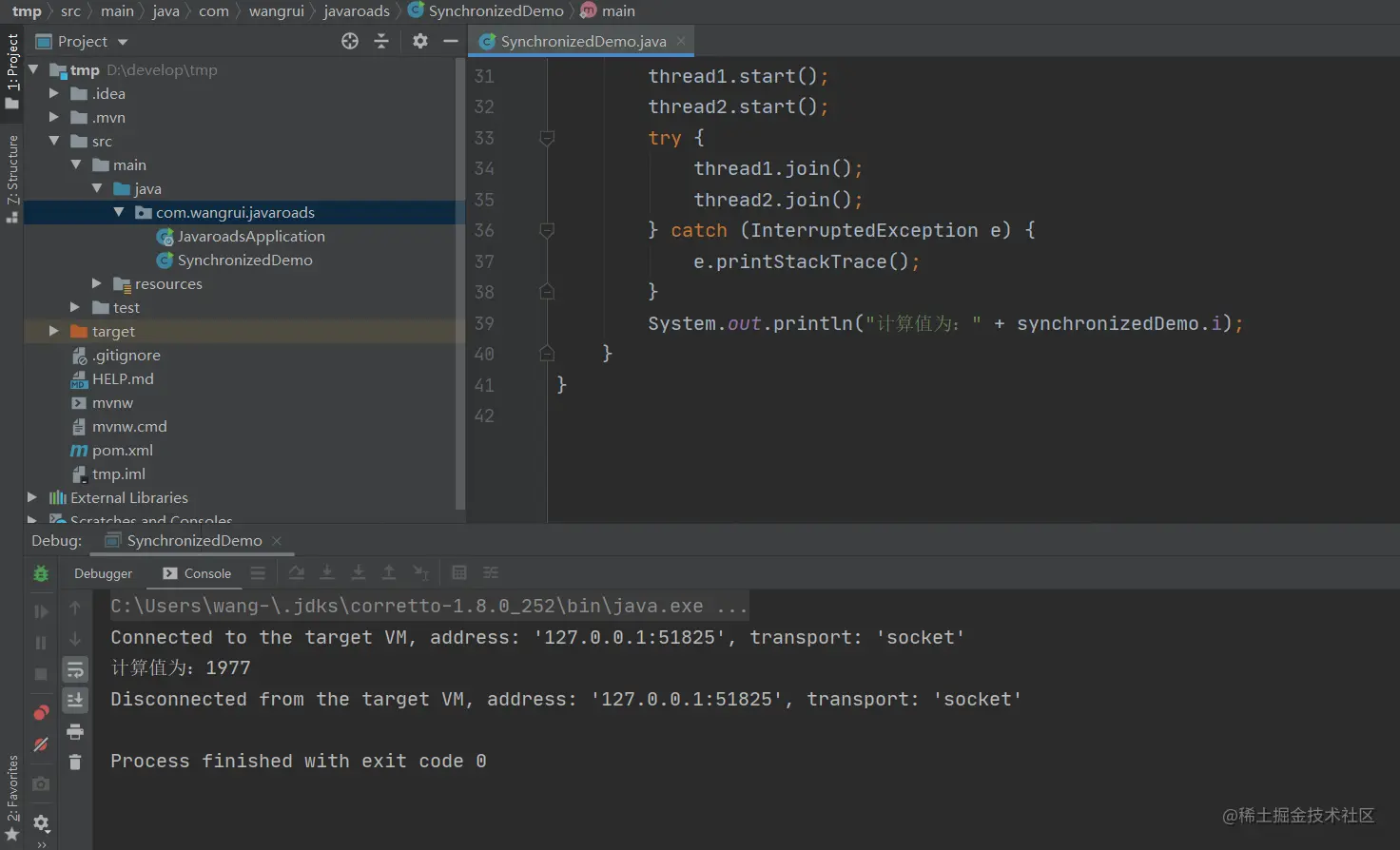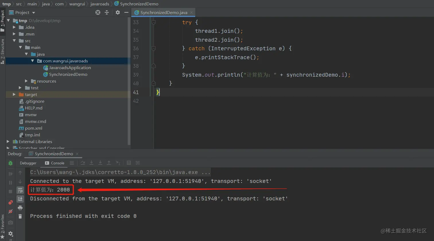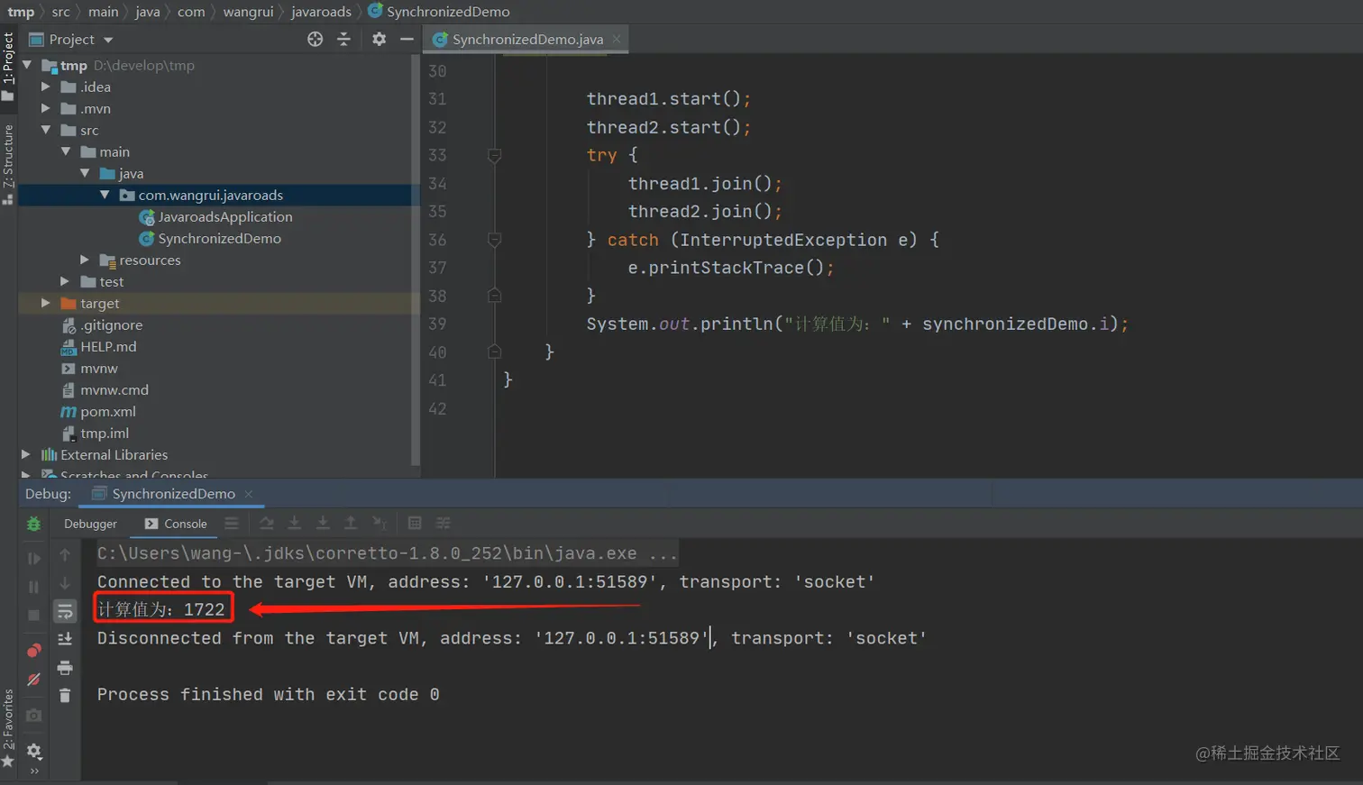 System.out.println("计算值为:" + synchronizedDemo.i);