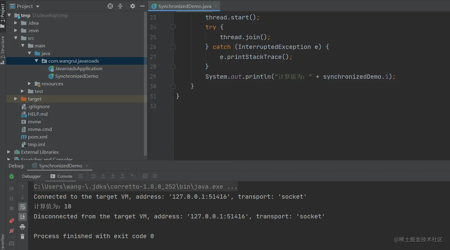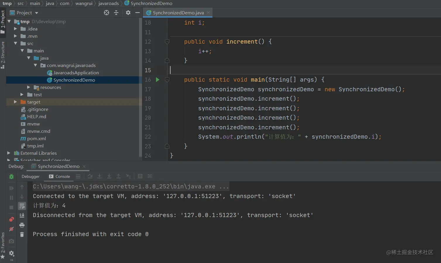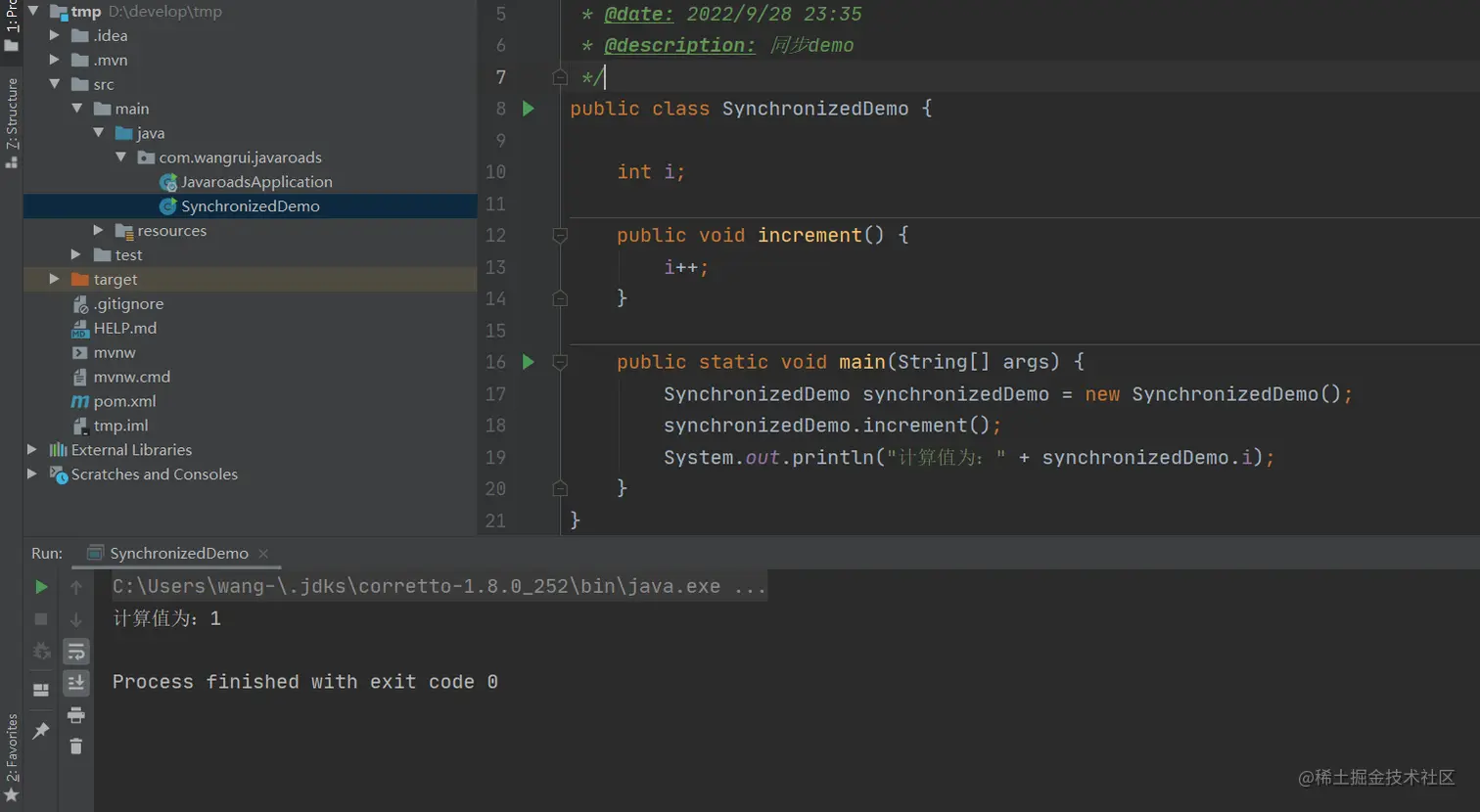 System.out.println("计算值为:" + synchronizedDemo.i);