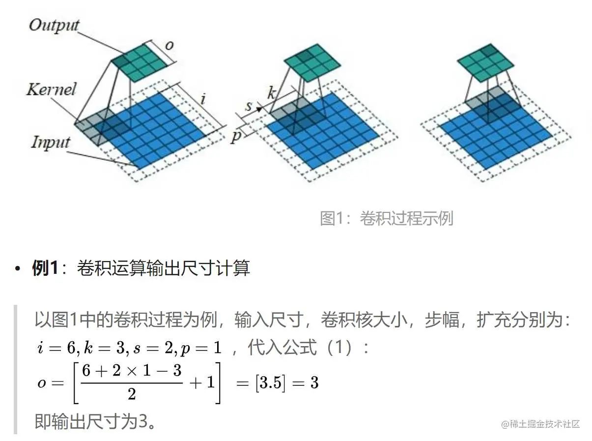 卷积就是对相邻的一片数据进行加权求和得到一个数的一种“合并”操作,将此操作对输入张量进行滑动扫描以得到输出张量。循着这个过程,我们很容易推导出卷积输出尺寸的计算公式。