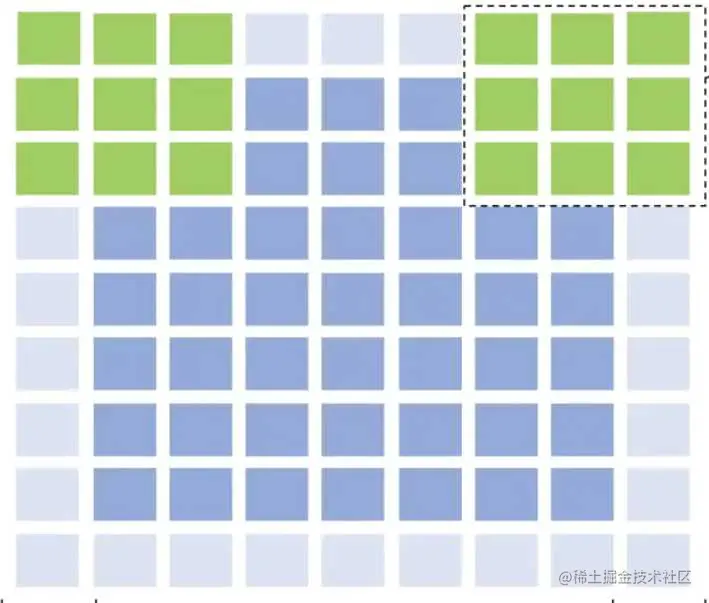 3、把图7-10中左上角的3×3矩阵向右移动一个格,这可以理解为步长为1。
