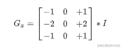 - 水平变化: 将图像I与奇数大小的模版进行卷积,结果为Gx。比如,当模板大小为3时, Gx为: