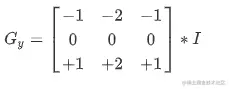- 垂直变化: 将图像I与奇数大小的模板进行卷积,结果为Gy。比如,当模板大小为3时, 则Gy为: