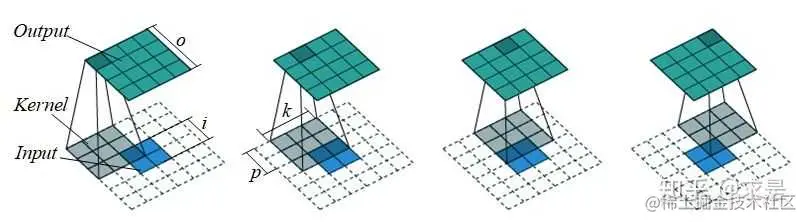 (1)padding指的是两边同时补零,所以补零后输入尺寸相当于变成了i+2p;