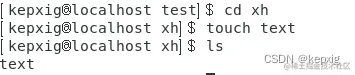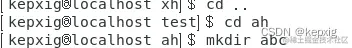 2.改变当前目录至/test,在该目录下,以自己名字的英文缩写建立一个空的文件,在建两个子目录(xh)与(ah)