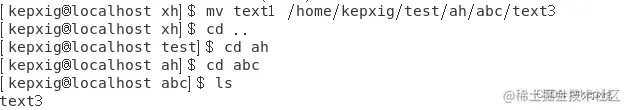 5.把刚建的text1文件移动到刚建立的abc子目录下,并改名为text3,同时把text2文件复制到xh子目录中