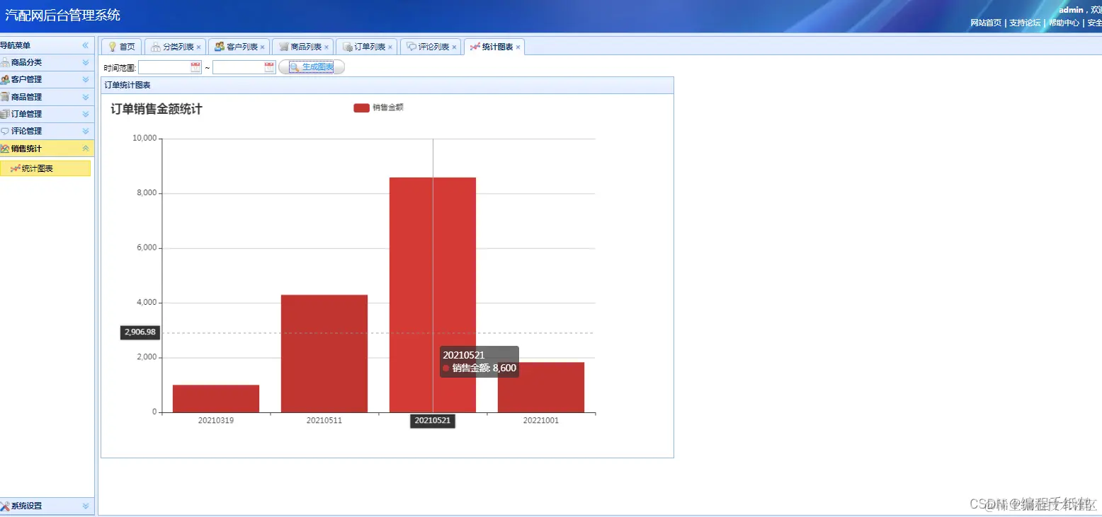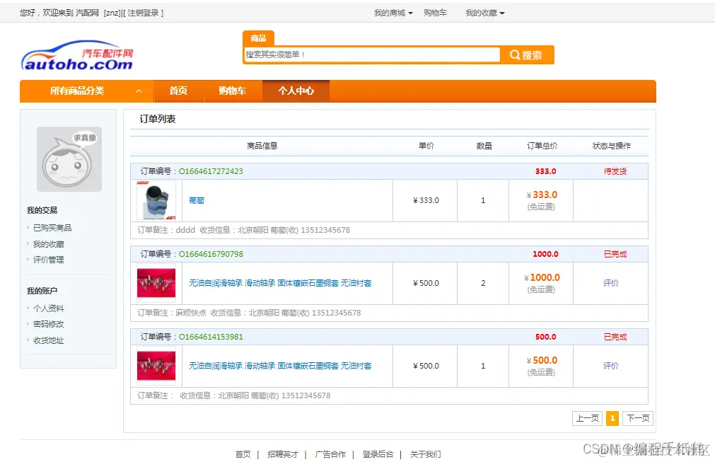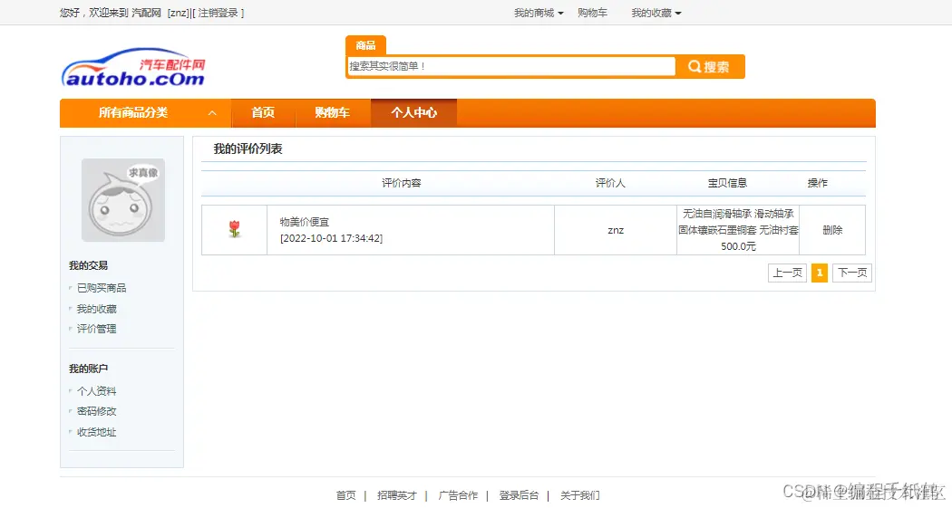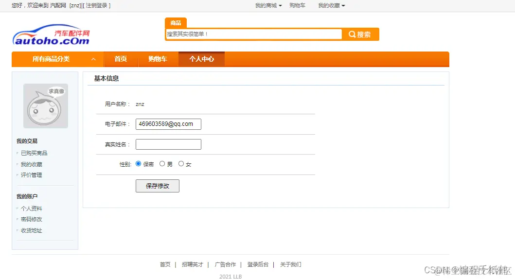 该系统主要分为汽车配件商城,以汽车配件为主题的在线商城系统,系统分为前后端,前台功能主要包括用户的登录注册、查询商品、购物车管理、用户信息管理、收藏商品、评价、收货地址管理以及订单管理。后台主要包括商品分类管理、客户信息管理、商品管理、订单管理、评论管理、销售统计以及系统设置。 本系统所采用的技术是SSM框架,整体功能需实现完整,功能界面较为精美。完成了一个较为完整的商城销售系统。