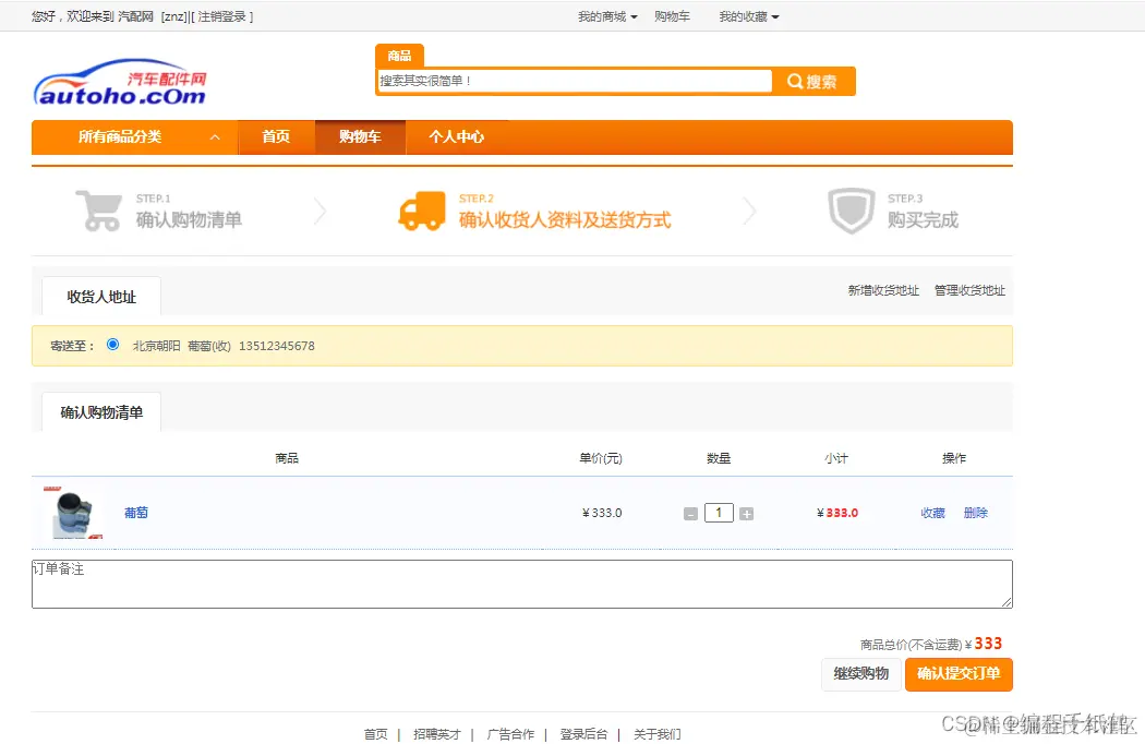 * 提交订单第二步