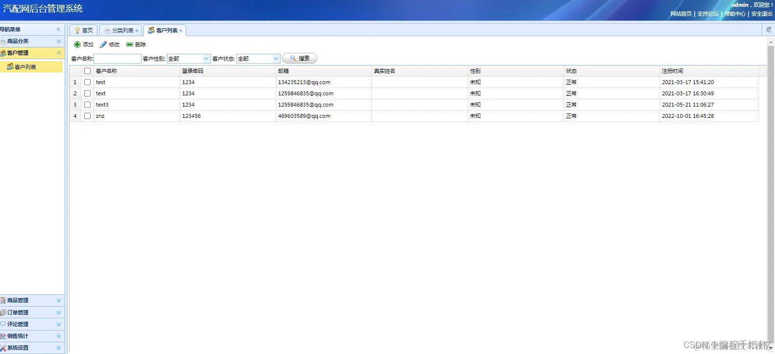 后台管理操作功能